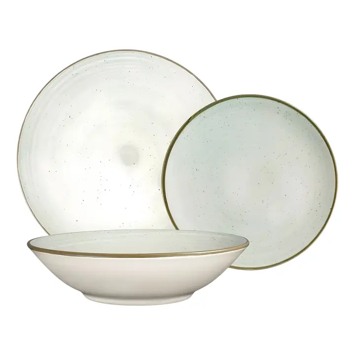 | Composição por cor | • 3 peças na cor Laranja Claro: 1 prato raso, 1 fundo, 1 sobremesa • 3 peças na cor Azul Claro: 1 prato raso, 1 fundo, 1 sobremesa • 3 peças na cor Cinza: 1 prato raso, 1 fundo, 1 sobremesa • 3 peças na cor Verde: 1 prato raso, 1 fundo, 1 sobremesa |