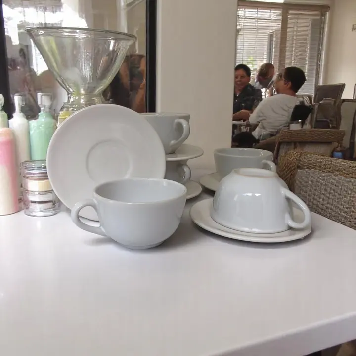 Para um espaço mais acessível e funcional, as xícaras combinam com cozinhas acolhedoras e descontraídas, com prateleiras abertas de madeira clara e paredes em tons suaves. A disposição em mesas de madeira rústica ou bancadas de granito simples adiciona um toque de charme ao ambiente. Acessórios como colheres de chá em aço inoxidável e porta-guardanapos de design simples complementam a composição.