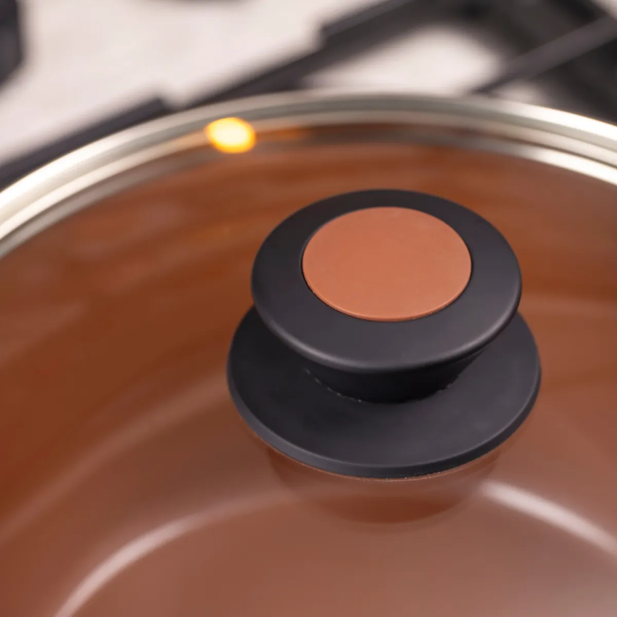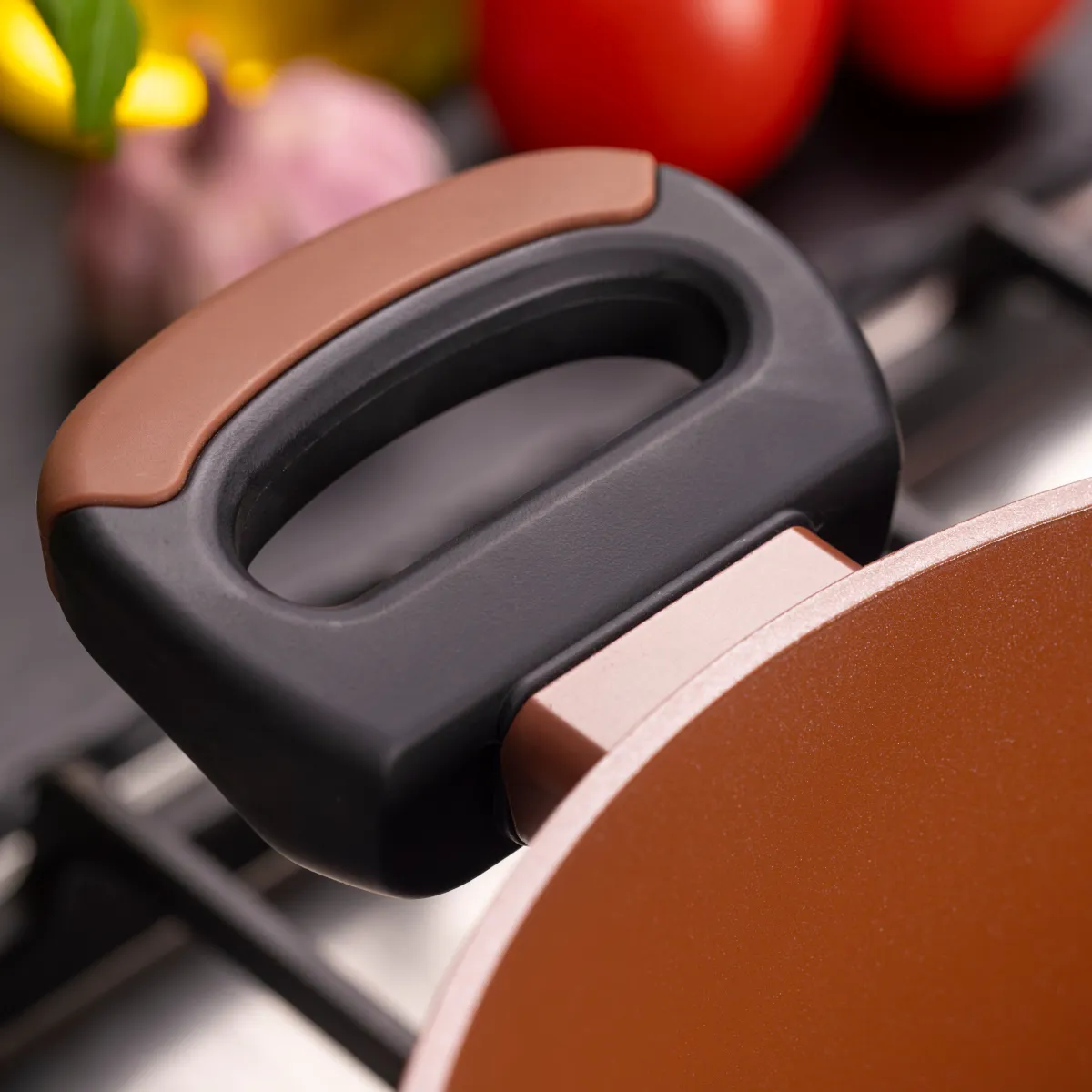 As Panelas Oxford Everyday foram criadas para quem valoriza o prazer de cozinhar com estilo, praticidade e consciência. Feitas com alumínio forjado de 3 mm de espessura e revestimento cerâmico antiaderente de três camadas, garantem uma experiência culinária saudável e eficiente, mantendo o sabor natural dos alimentos.