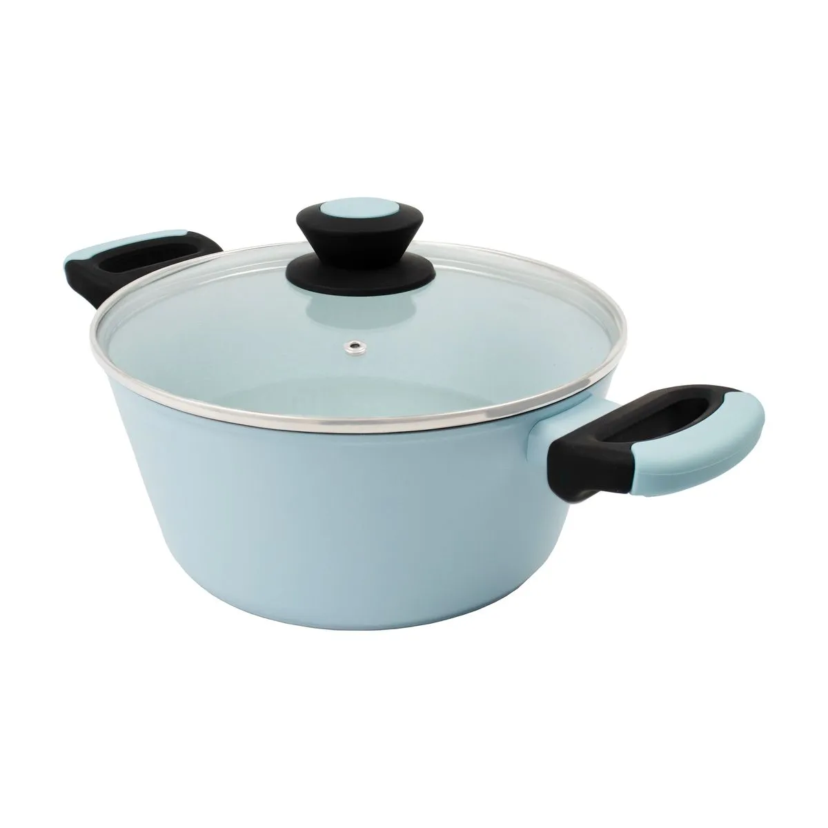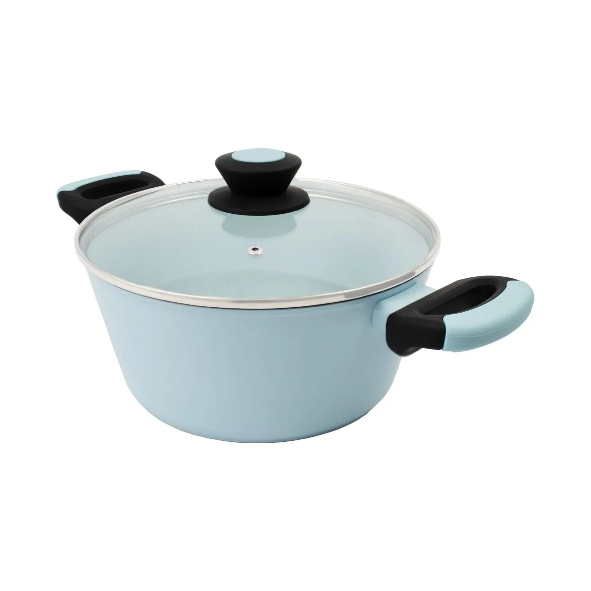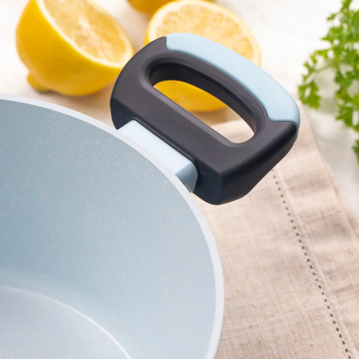 A tonalidade Ice, um azul suave e sereno, combina perfeitamente com cozinhas modernas e minimalistas, transmitindo leveza e harmonia visual. Seus cabos com toque emborrachado oferecem conforto e segurança ao manusear, mesmo durante o uso contínuo.