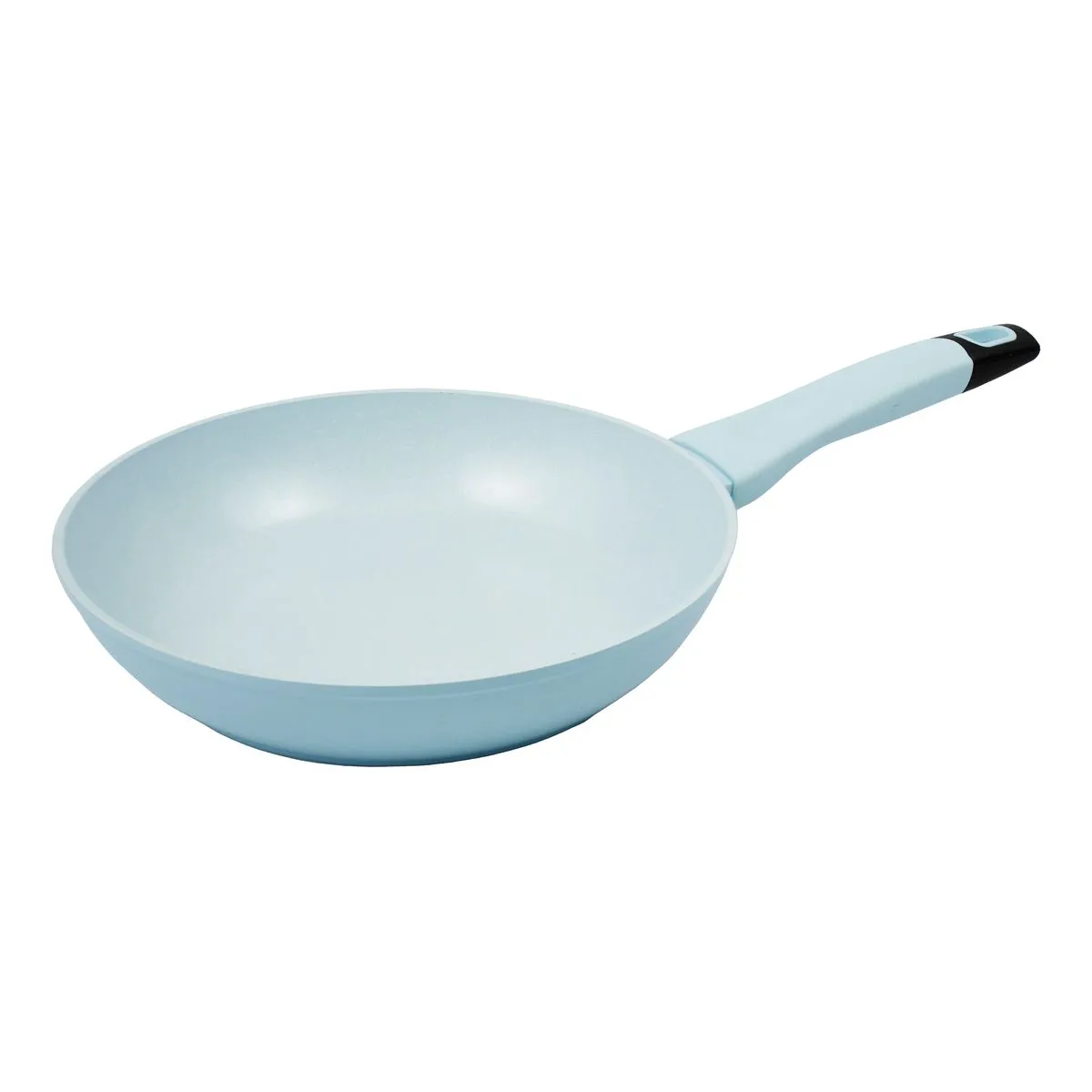 O revestimento cerâmico antiaderente de três camadas evita o uso excessivo de óleo e facilita a limpeza, enquanto o alumínio forjado, com até 3,5 mm de espessura no fundo, garante aquecimento uniforme e preparo eficiente.